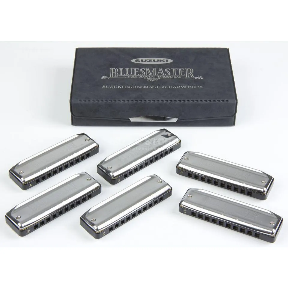 The Suzuki Bluesmaster MR-250SET is a premium 6-piece diatonic harmonica set designed for players who need multiple keys in one complete package. Each harmonica is built with Suzuki’s precision engineering, delivering rich tonal clarity, smooth airflow, and reliable performance across all playing styles.