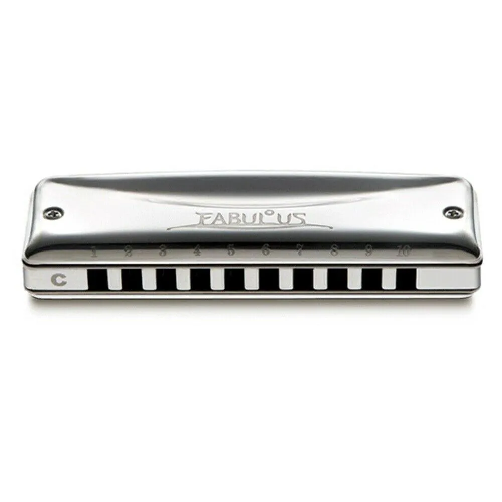 Suzuki brings the same exacting design philosophy and advanced manufacturing processes as used in the Fabulous chromatics to the popular 10 Hole Diatonic Harmonica. Also called the Fabulous, the new model's warm tone and amazing reed response come from an uncompromising commitment to achieving perfection through the use of specially designed top-quality components.