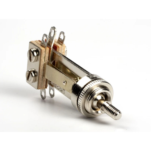 Genuine Switchcraft 3-position pickup-selector switch. This is the original toggle switch used in the Les Paul beginning in 1952. It's a long switch, so it may not fit in thinner guitars, and even certain Les Paul models now ship with the shorter version of this switch. But this is the original, so if you have an older guitar or a Historic Les Paul, this is your switch.