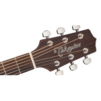 The slim satin-finish mahogany neck and 12" radius ovangkol fingerboard provide great feel and playability, while the split saddle design of the pinless ovangkol bridge provides superior intonation for sweeter sounding chords and single note runs.