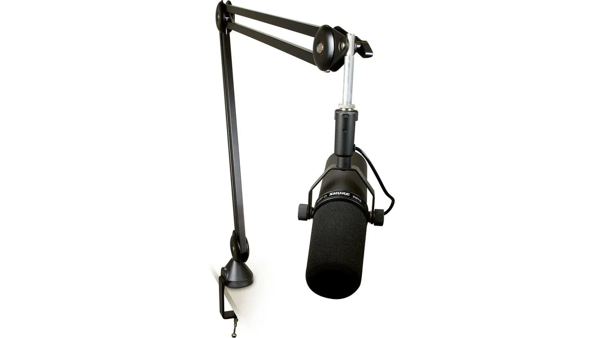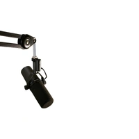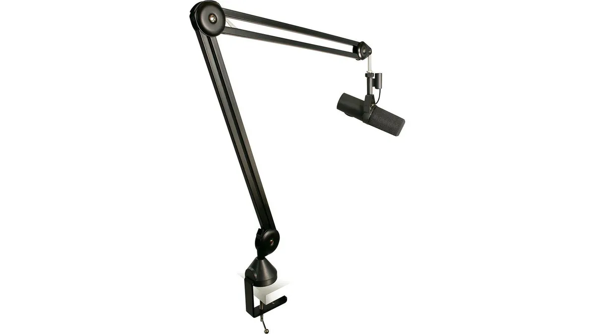 The BCM-200 Broadcast Mic stand is a scissor style design that offers more reach than the competition - offering a max height of 39” when fully extended. The flexible, scissor style tension mechanism allows the BCM-200 to continuously reposition, offering fluid motion in dynamic environments. The extended drop features a 3.2” length - this gives side connecting mics like the SM7B more positioning options, and adds utility for other models. The non-destructive deluxe mounting system includes a round base that allows easy rotation, and a flexible clamp sys tem which also can be used as a utility hanger.