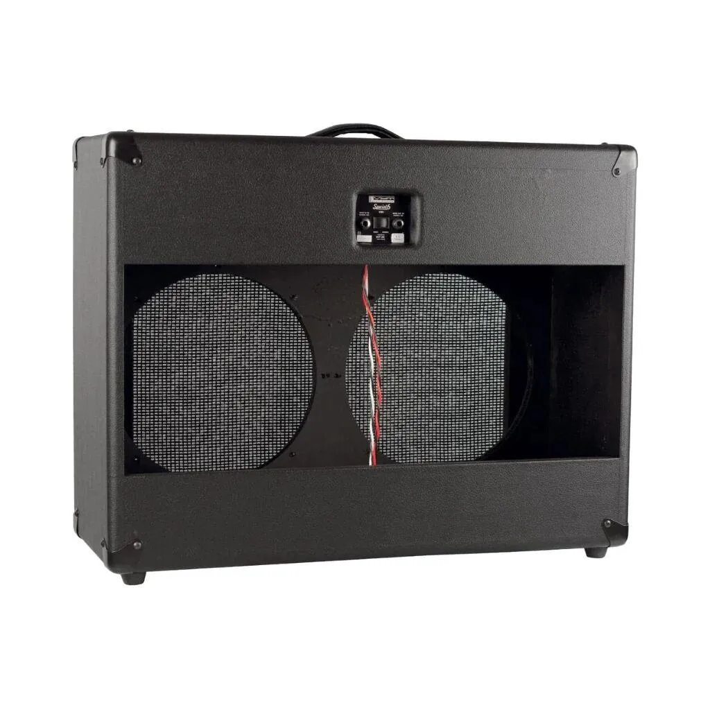 The VHT Special Series 2x12 Empty Speaker Cabinet is assembled from light-weight Poplar plywood in an open-back cabinet design and is outfitted with a mono switch (with isolated ground paths in stereo mode for no ground issues) and a high-quality, durable, recessed leather handle.