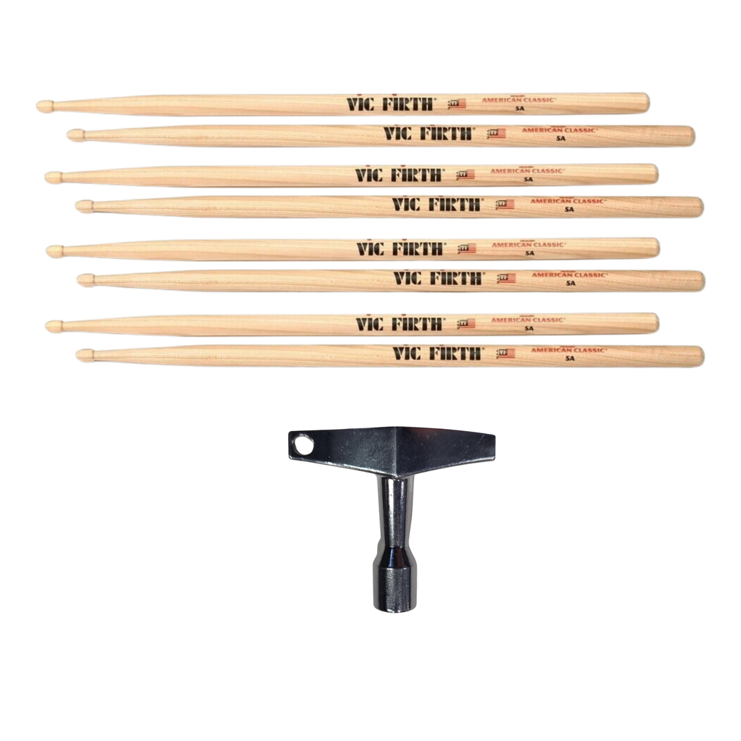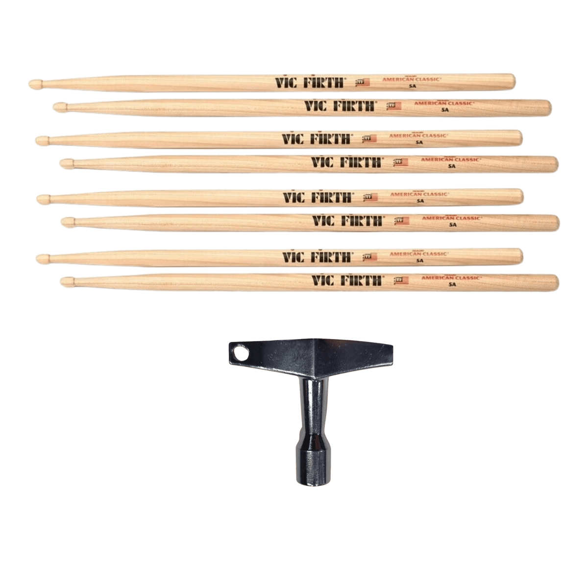 Vic Firth Classic Hickory 5A Wood Tip Drum Sticks x 4 Pairs c/w Free Drum Key