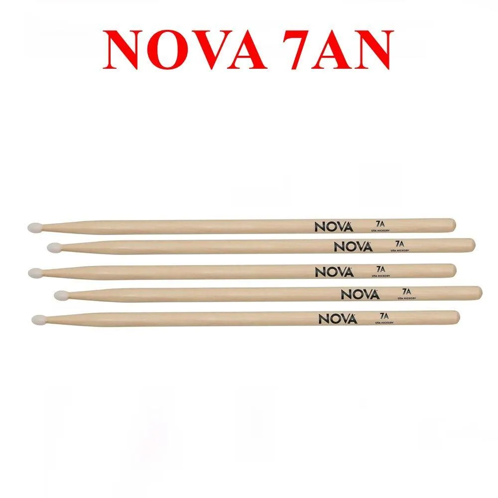 Nova drumsticks are Vic Firth's budget brand/line. Made of hickory with your choice of either wood or nylon tip, these are a great value for the beginning player or musician on a budget. Get Vic Firth quality at an extremely affordable price.