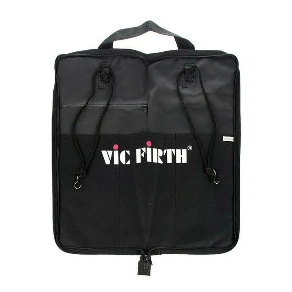The Vic Firth standard drumstick bag offers 3 inside pockets to hold 12 pairs of sticks with an outside pocket for small accessories. In durable, water-resistant nylon. Perfect for students. H = 18-1/2", W (when open) = 17-1/2".