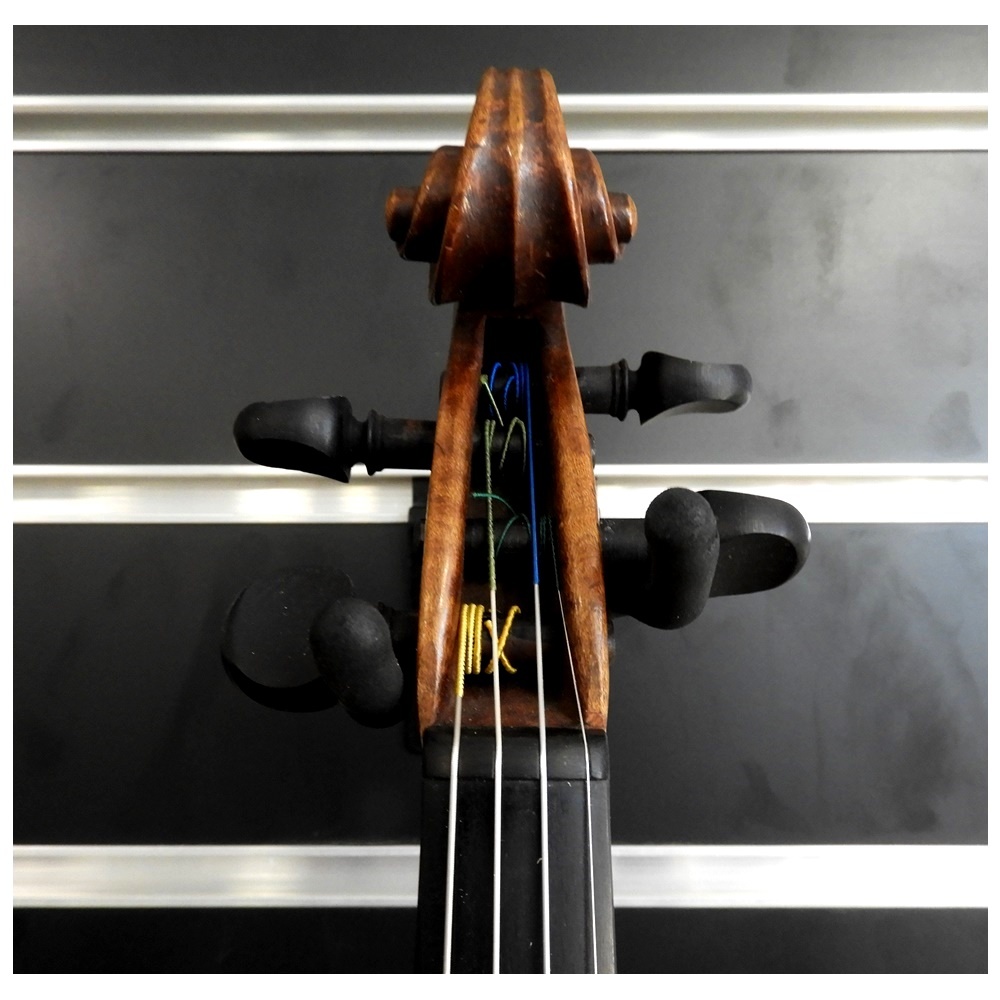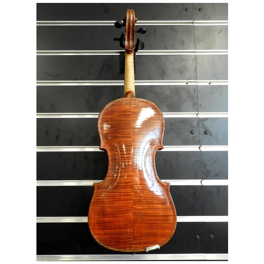 The wood quality is exceptional, especially the maple back and scroll. The sound holes and scroll appear to match examples of known Geissenhof violins. The top has quite a bit of wear and several repaired cracks that are properly cleated.Including a sound post crack It has also had a repair just beneath the button.