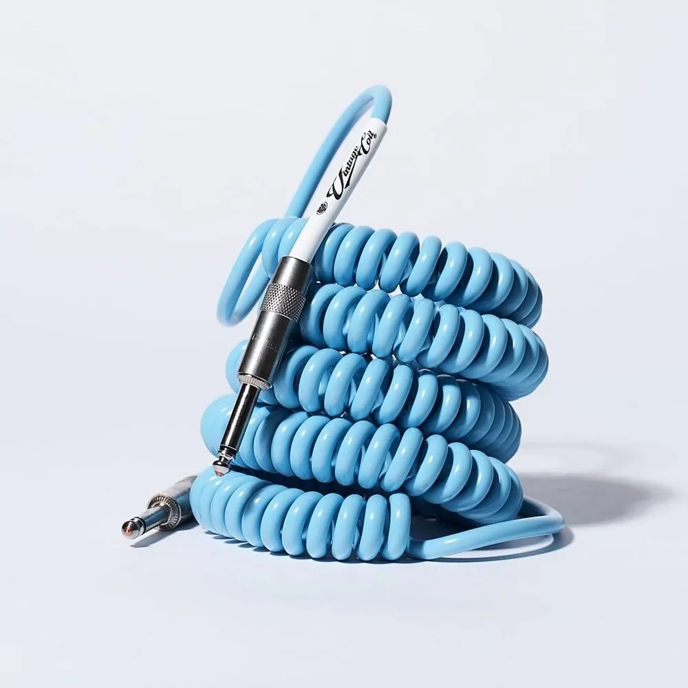 Voltage Vintage Coil 25ft Coiled Guitar Cable straight / Right Angle - Blue