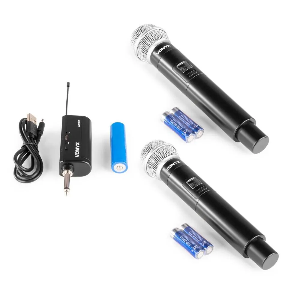 - Handheld microphones are battery operated (2x 1.5V/AA, incl.)