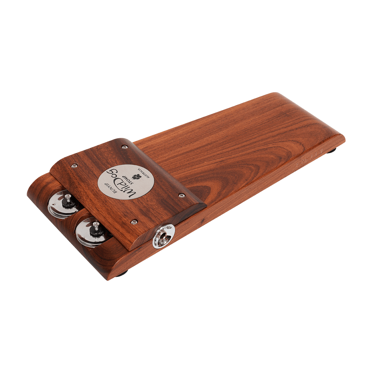 The Bunyip is much like the Silverback with it’s built in tambourine jingles, however it has all solid Australian timbers as well. The new jingle feature can easily be switched off with the black roller on threaded rod, which makes this a very versatile stomper. The raised tone cap provides an instant sweet spot for a deep warm tone.