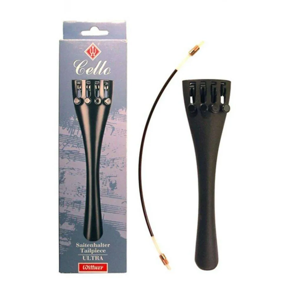Wittner Tailpiece “Ultra” for Cello 4/4 – 7/8. Made of high-tech composite material with 4 string adjusters, black screws and nylon tailgut. Ultra-strong and ultra-light.