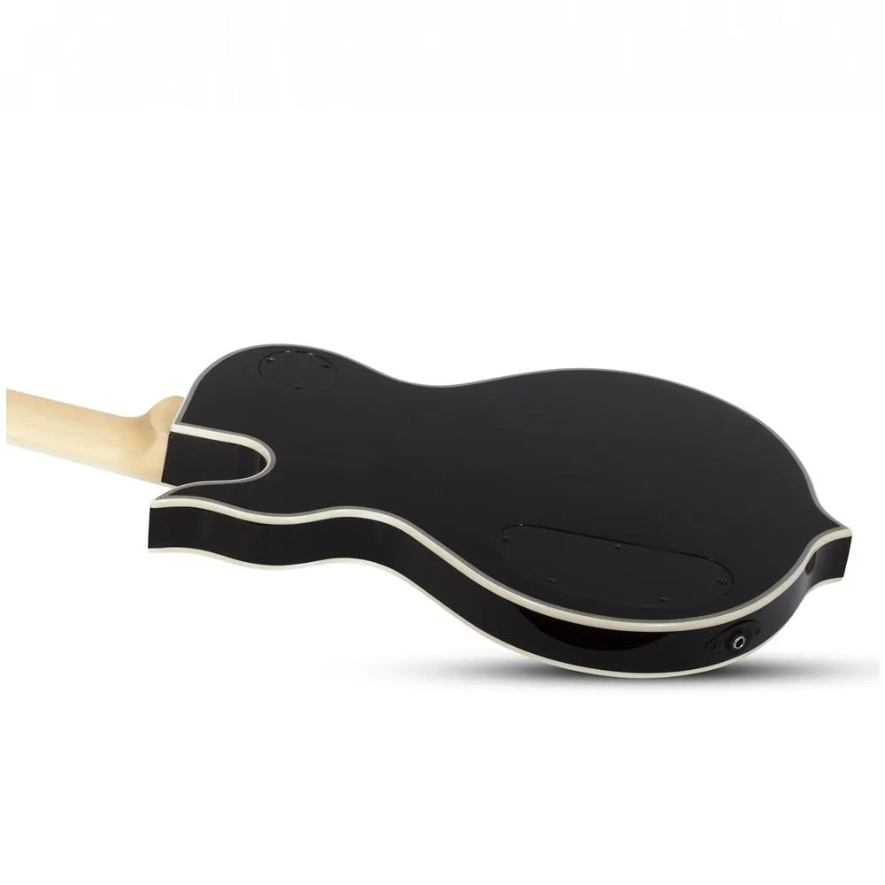 A 3-piece maple neck with a 14" radius provides comfort while the 24.625" scale length provides ease of use and comfort. The ebony fretboard is decorated with large mother of pearl block inlays over 22 frets adding a touch of class to this otherwise menacing looking machine.